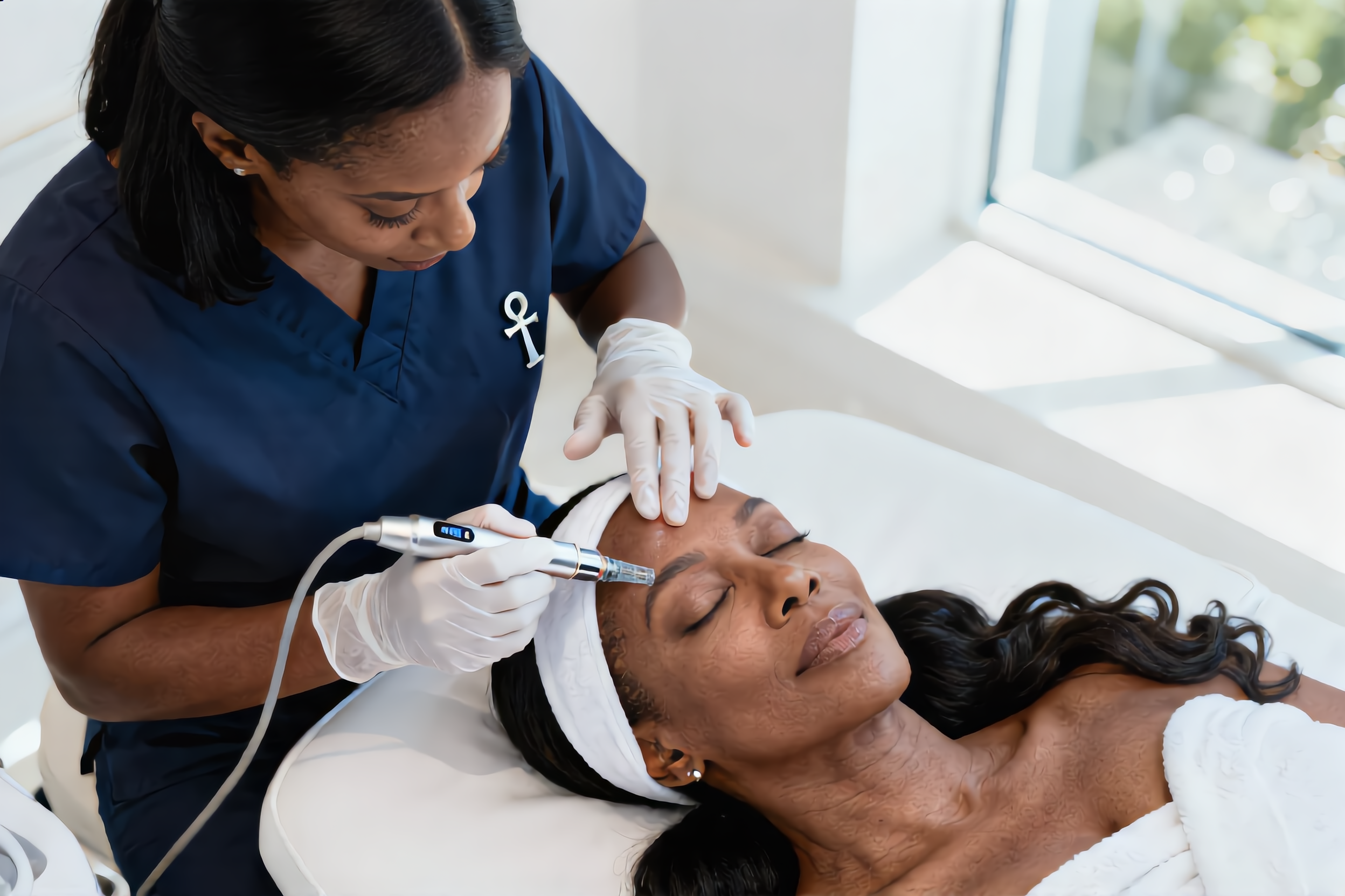 Radiofrequency Microneedling uses controlled microneedling combined with radiofrequency energy to stimulate your body’s natural collagen and elastin production, improving skin texture, firmness, and tone with minimal downtime. The results are gradual and long-lasting—smoothing fine lines, refining pores, and restoring a firmer, more youthful appearance.